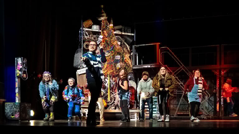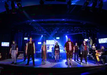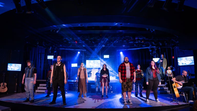 A raw, kinetic staging focused on human vulnerability inside a punk landscape.